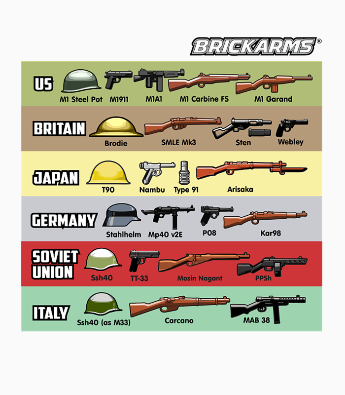 Bring historical power to your minifigure collection with BrickArms WWII Pack v3 – weapon accessory set designed specifically for the World War II period. This pack includes many famous rifles, submachine guns, pistols and heavy weapons, helping to recreate fierce battles realistically and vividly.