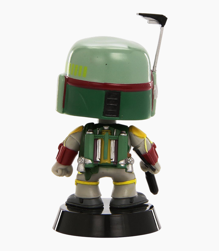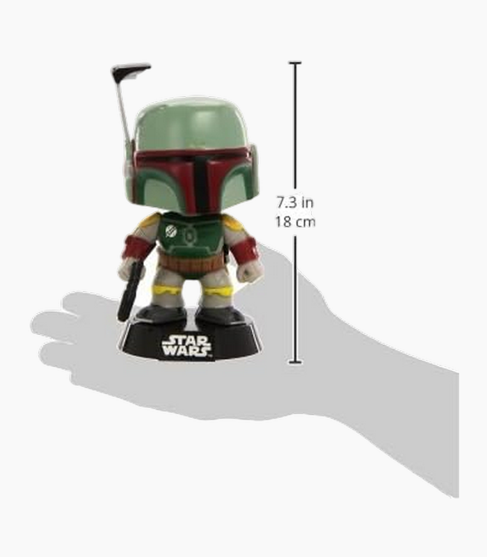 With Funko's signature large head - small body design, the Boba Fett figure retains familiar details such as the Mandalorian helmet, jetpack, and signature battle armor.