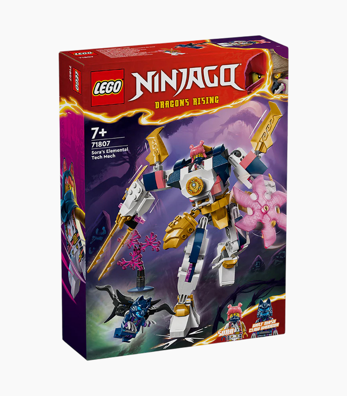Immerse yourself in the world of NINJAGO with Sora's technological mech! The “Sora's Elemental Tech Mech” set offers a highly versatile building and combat experience, recreating high-tech ninja action.