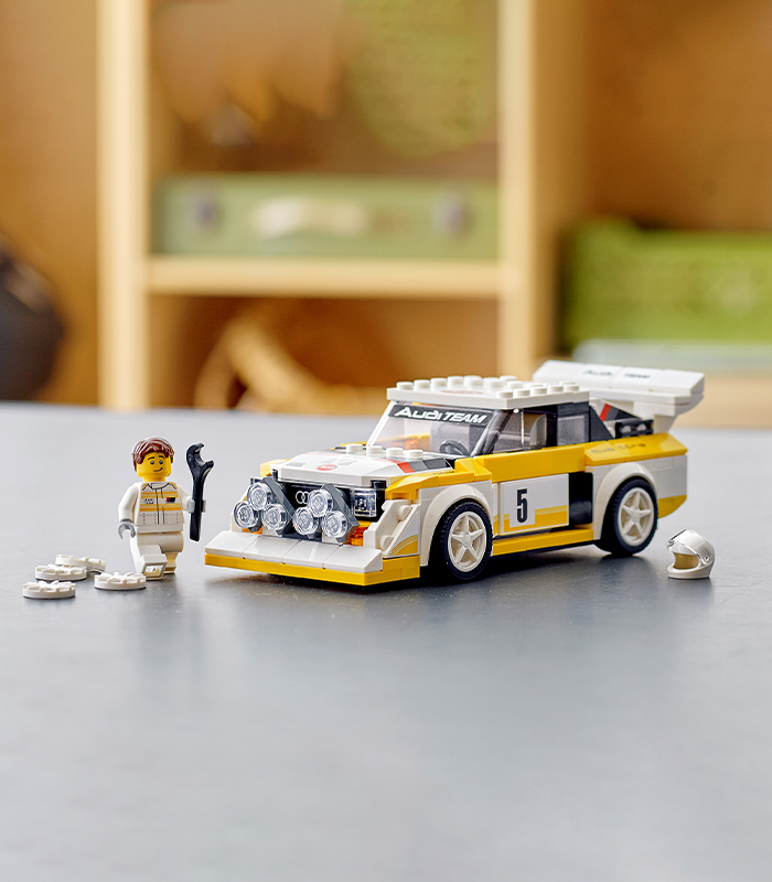 Audi racer minifigure: Included is a racer character dressed in a classic 1980s Audi racing outfit, evoking a delightful sense of nostalgia. 👨🚀