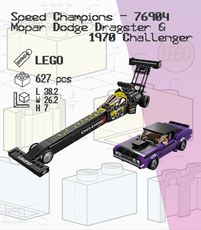 🏎️ LEGO Speed Champions 76904 It offers an incredibly satisfying assembly experience with a large number of pieces (over 600 pieces). You'll get to directly compare the development of racing technology through two iconic Dodge models.