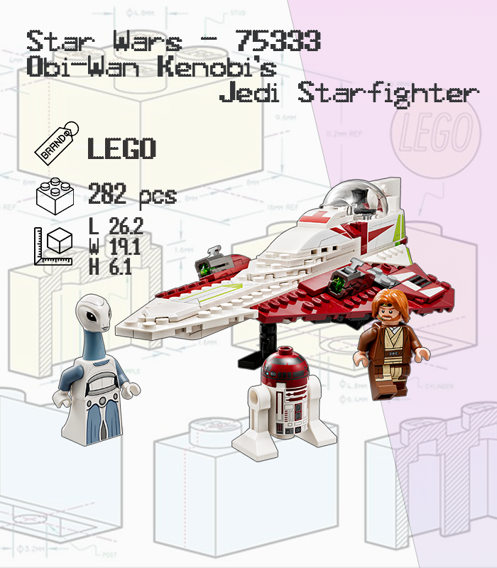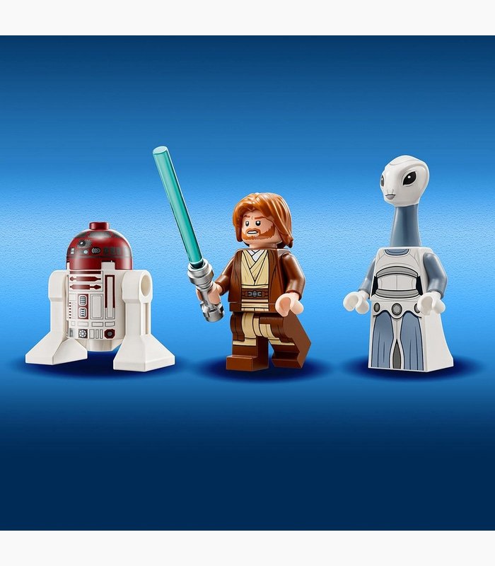 Features: The vessel has an opening cockpit to accommodate the Obi-Wan, two stud shooters, retractable landing gear, and a lightsaber holder located beneath the hull.