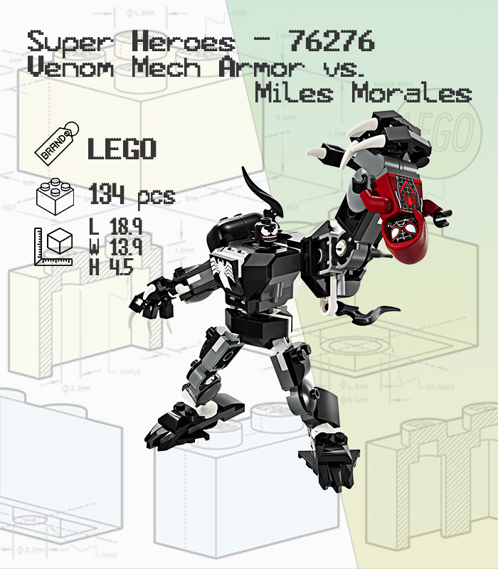 🌟 LEGO 76276 – Venom Mech Armor vs. Miles Morales Bringing a vivid experience from the Marvel universe: you'll get the Venom mech complete with mechanical details, claws, and a cockpit for the Venom minifigure to sit in, ready to face off against Miles Morales and his webs.