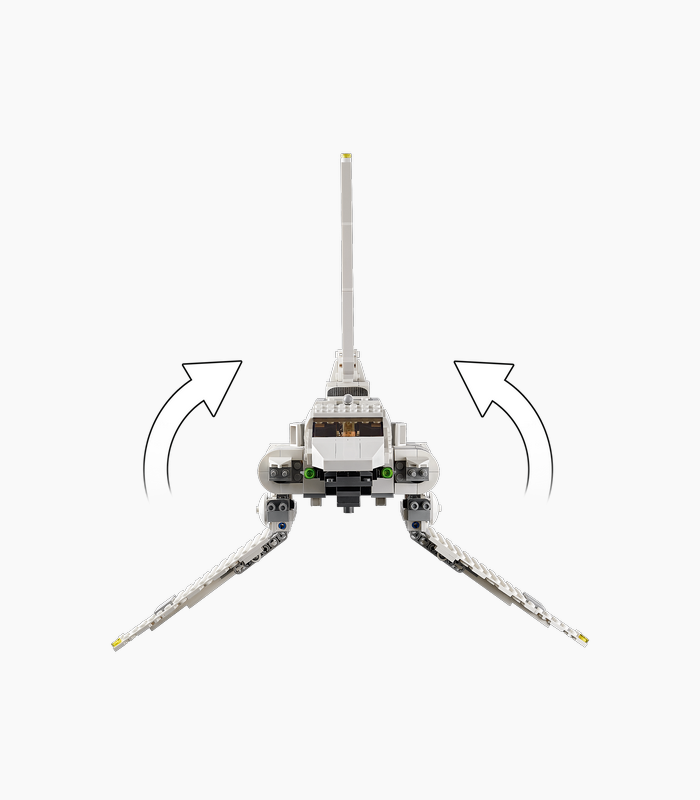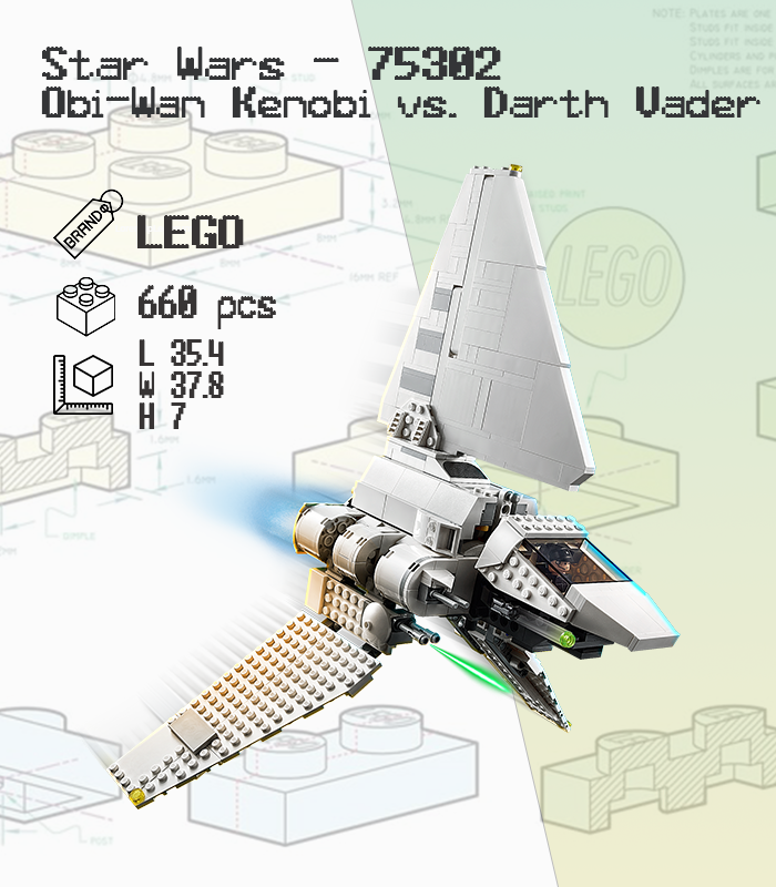 Chiếc tàu con thoi Lambda-class T-4a màu trắng muốt với 3 cánh (tri-wing) là một trong những thiết kế đẹp nhất của vũ trụ Star Wars. Bộ 75302 tập trung vào sự vững chãi và tính năng chơi (playability).