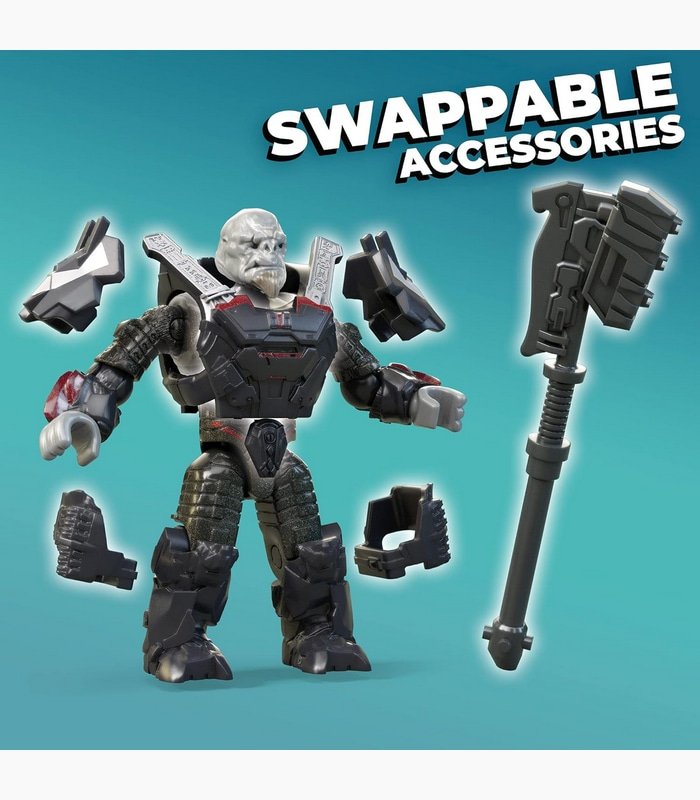 Thiết kế hung bạo: Chiếc xe được mệnh danh là “Máy chém” với bánh trước khổng lồ dùng để nghiền nát đối phương. Mega Construx đã tái hiện rất tốt với các chi tiết màu đỏ/xám đặc trưng của phe Banished.