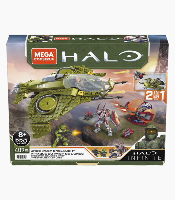 Bộ MEGA Construx Halo – UNSC Wasp Onslaught tái hiện phương tiện chiến đấu trên không nổi tiếng Wasp VTOL (Vertical Take-Off and Landing Aircraft) của quân đội UNSC trong vũ trụ Halo Infinite.